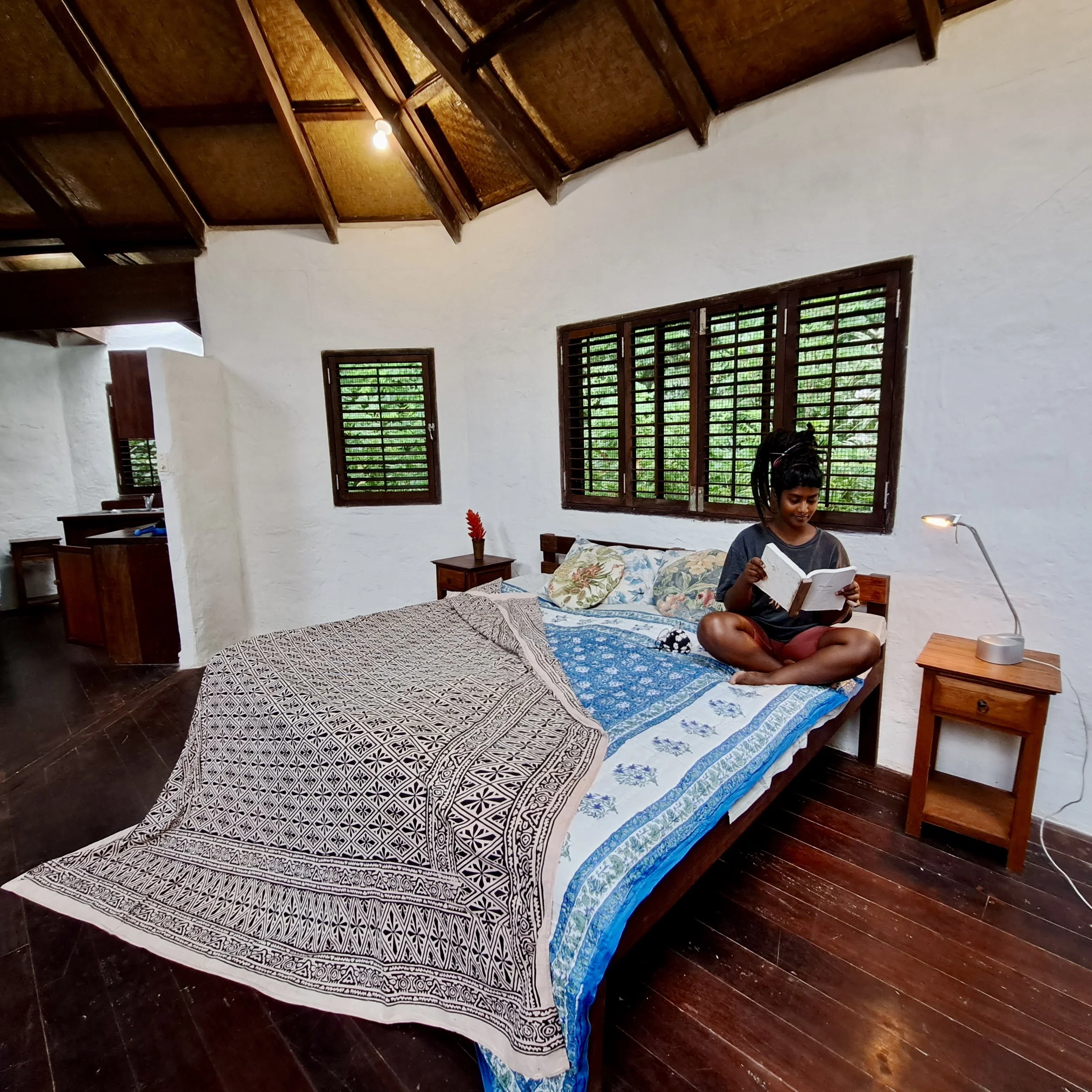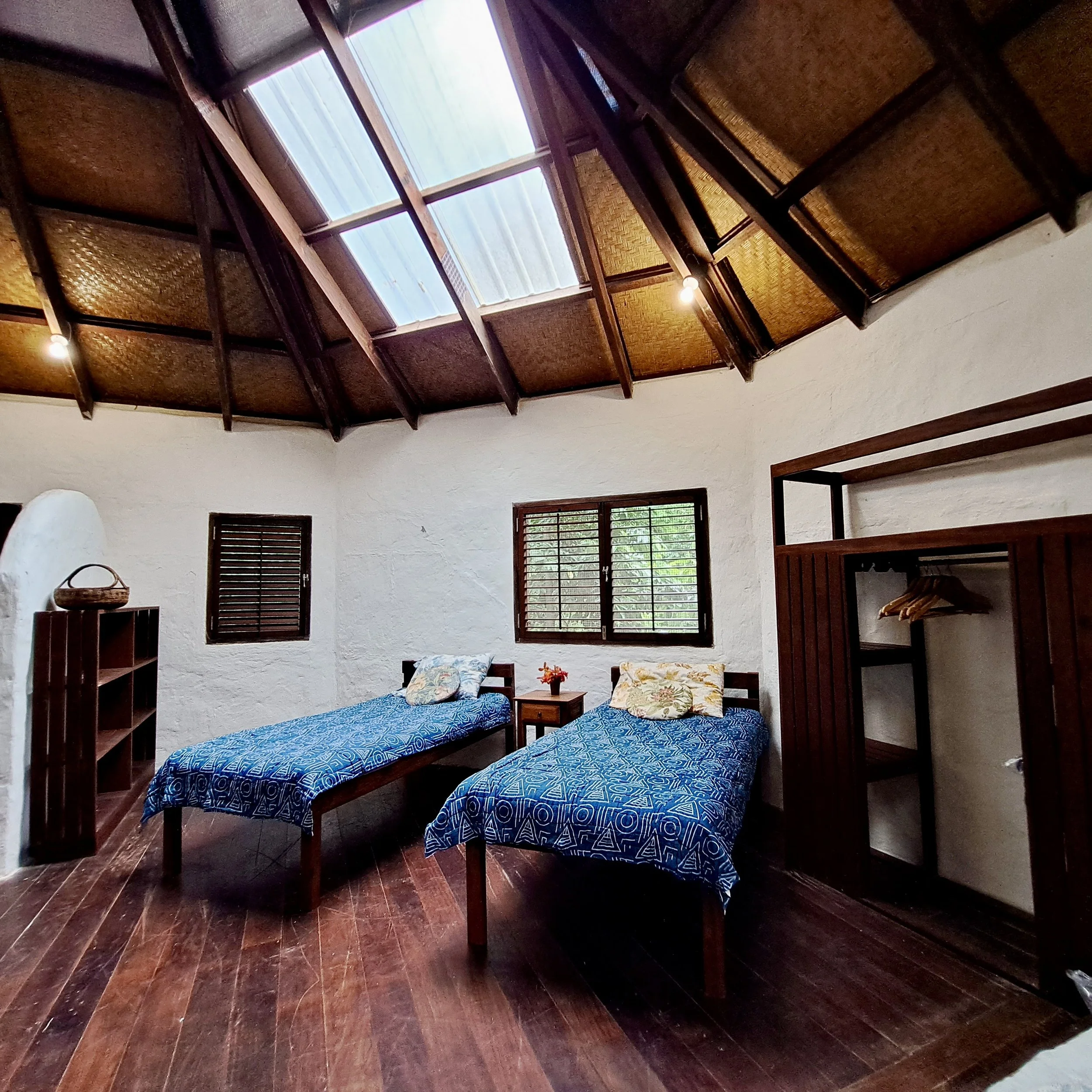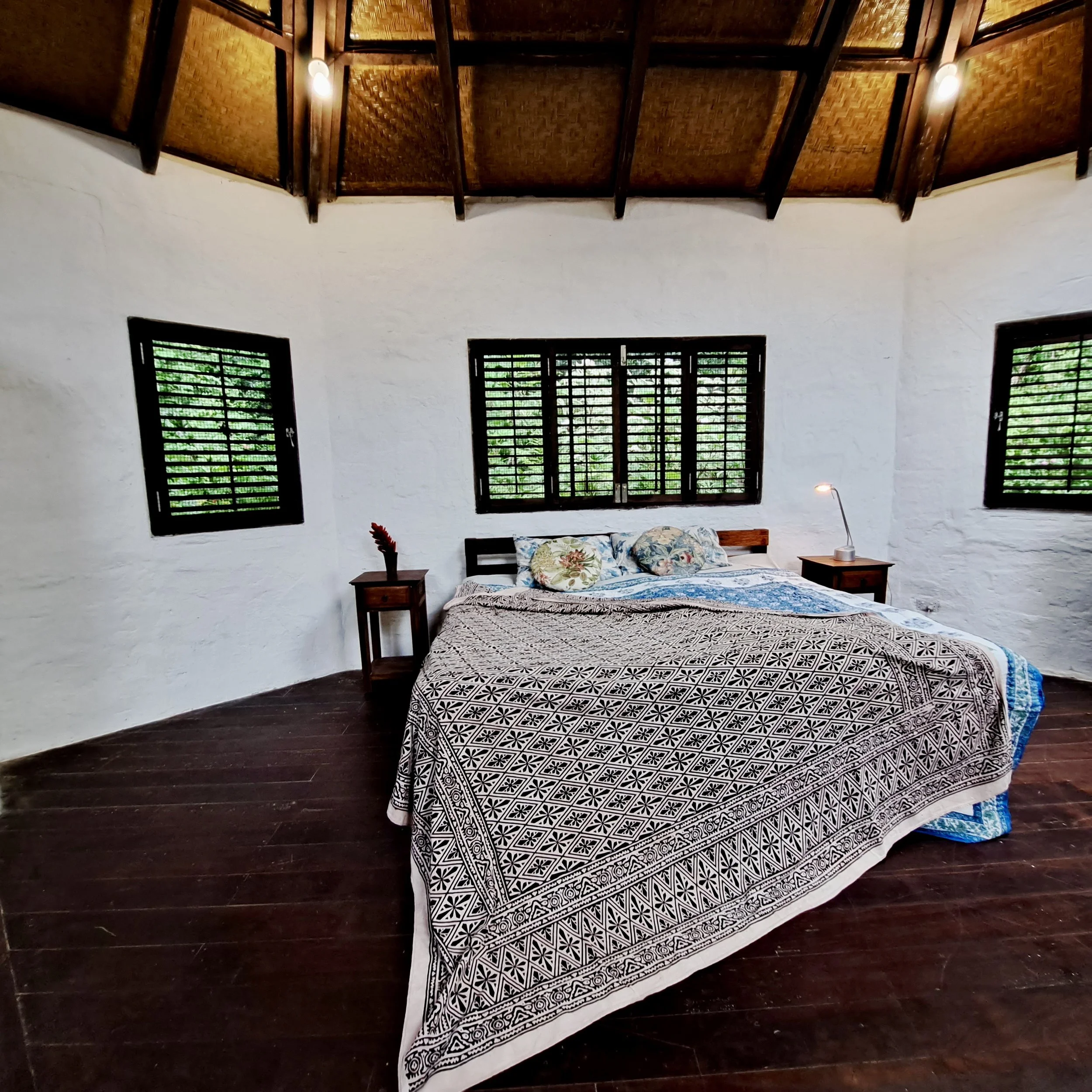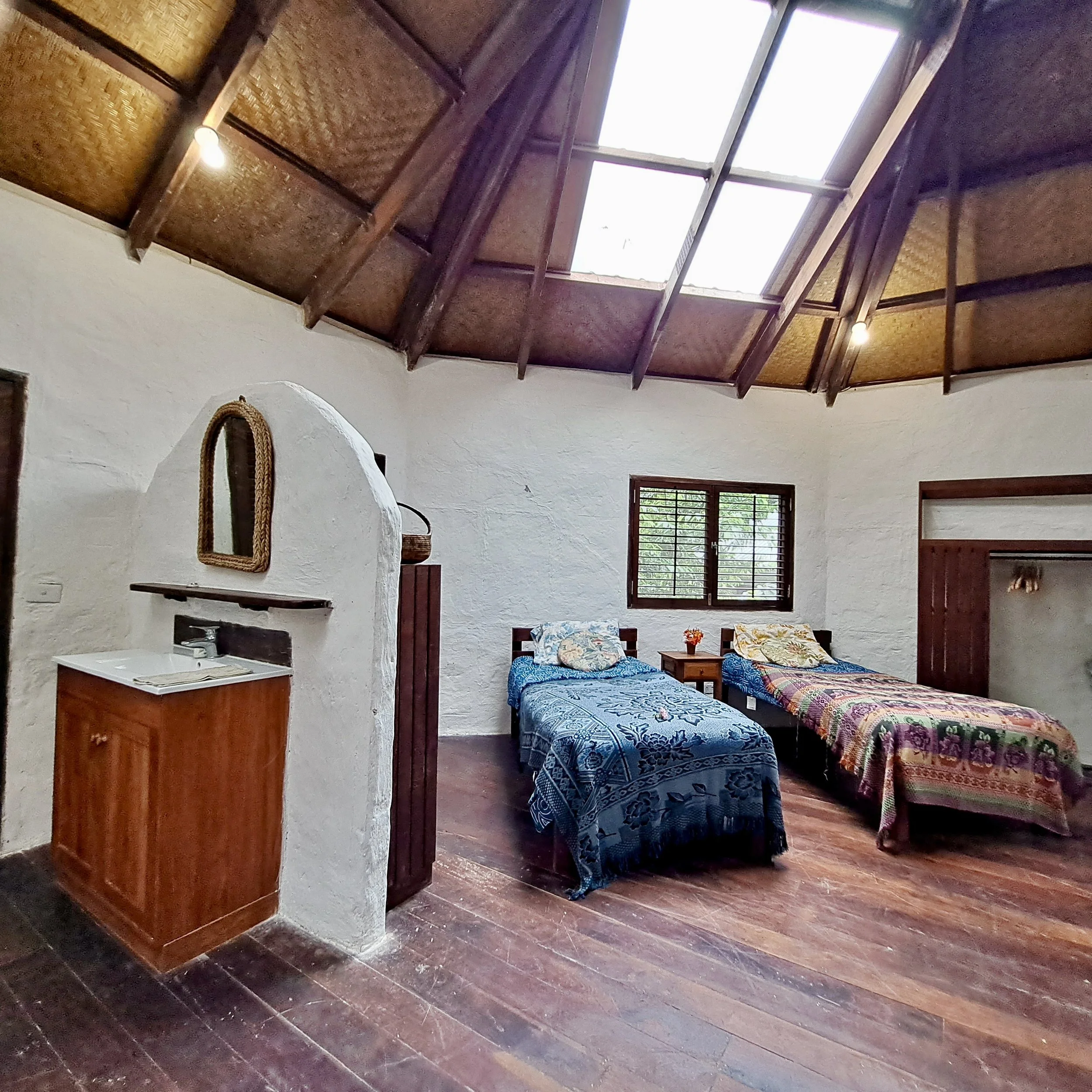 Return to earth; settle in, unwind, and enjoy the gift of pure nature. We welcome bookings of at least one week in the dry season in our two guest lodges, Shiva and Shakti. Nestled within lush green forest, both lodges overlook to the bush and mountains and are located near to walking trails.
