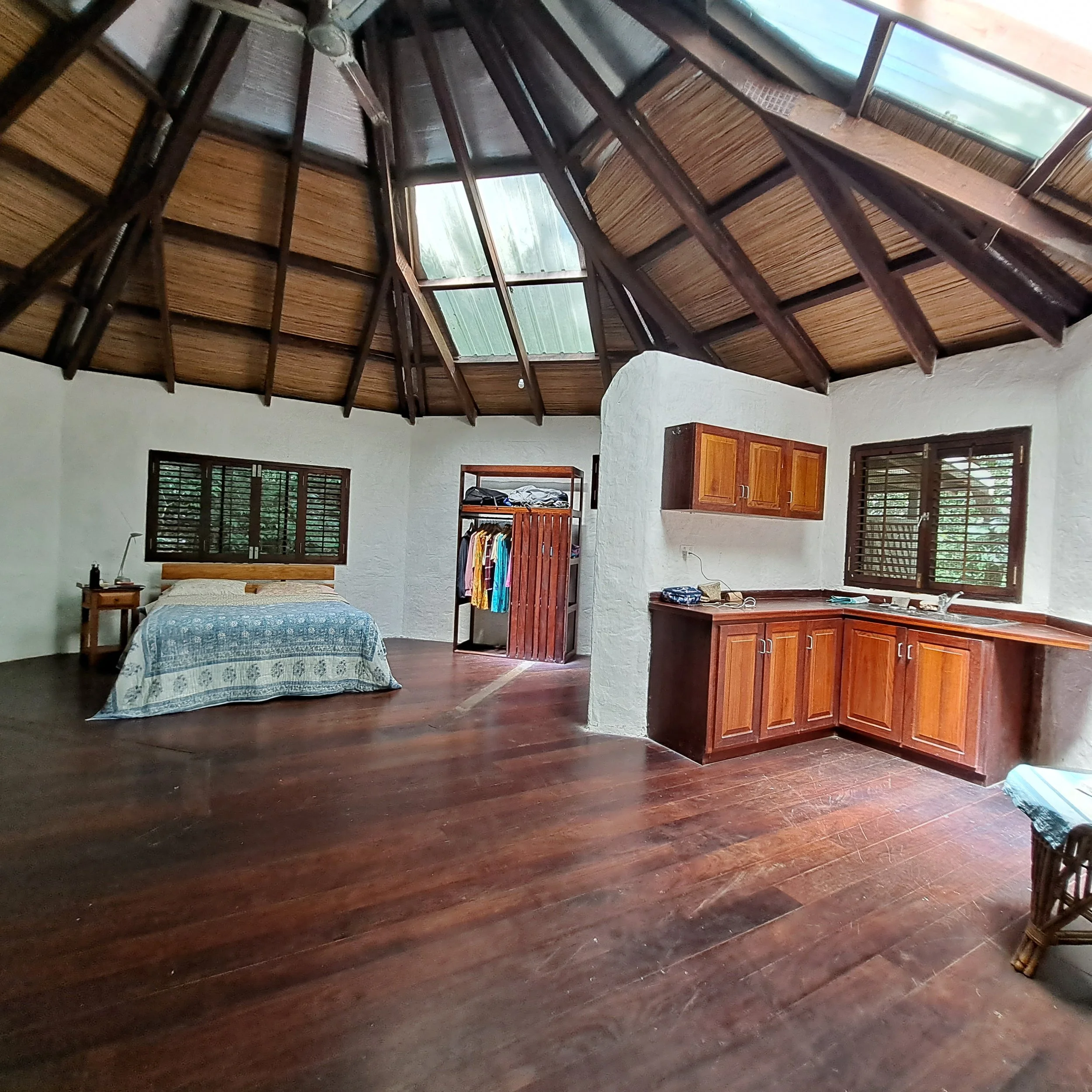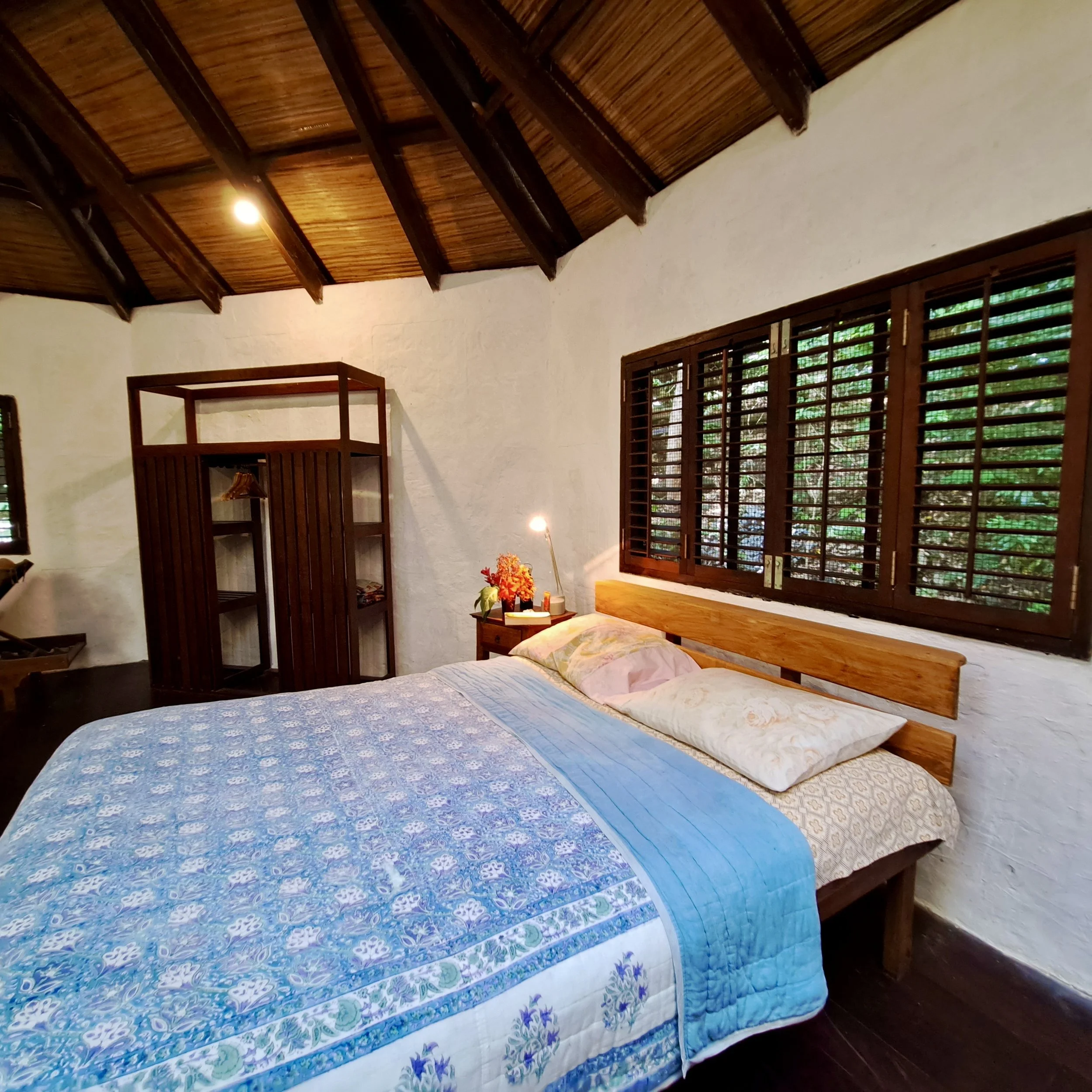 We offer private accommodation to residents in the ecovillage. Our bungalows are spacious and well-appointed, constructed from cob and local timbers. Long-term residents are also invited to construct their own dwelling from local materials as a community project.